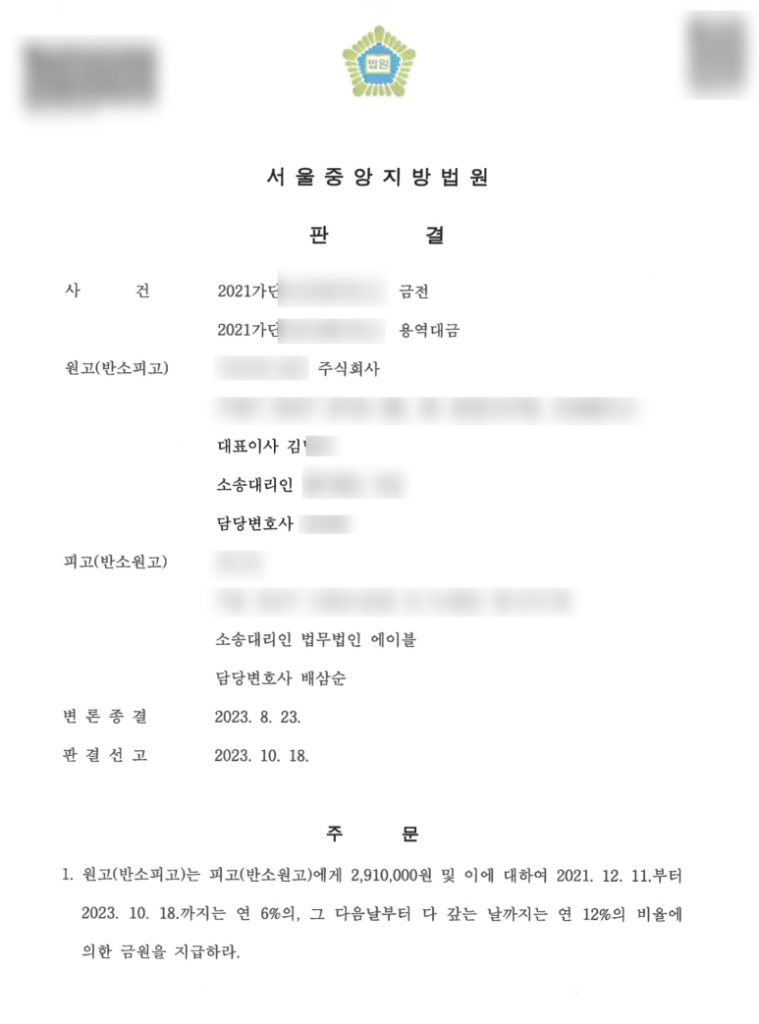 성공사례 I 금전청구·용역대금 청구 소송에서 피고 측 대리, 전부 승소 달성
