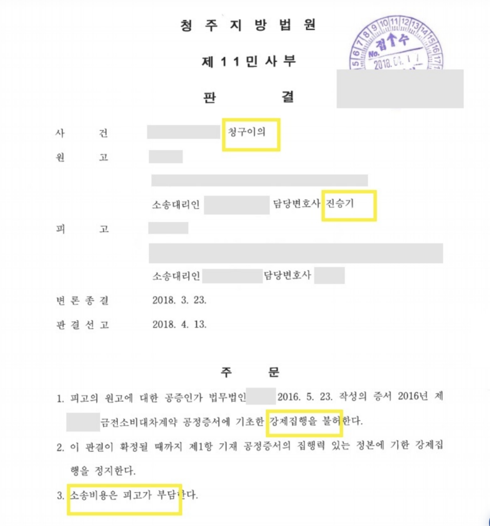 승소사례 I 강제집행 무효 청구 ‘원고 전부 승소’