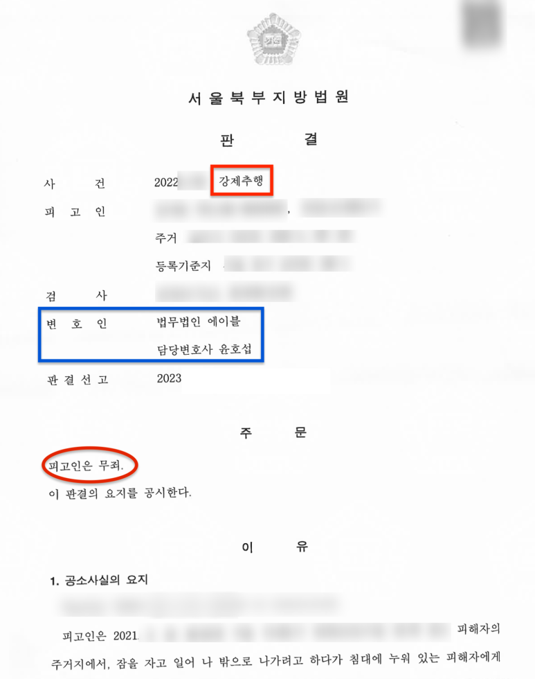 [판단 요약] 이 사건의 공소사실에 부합하는 직접증거로는 사실상 피해자의 진술이 유일했습니다. 법원은 조사한 증거들을 종합하면, 피해자의 진술 등의 증거들만으로는 이 사건 공소사실이 합리적인 의심의 여지가 없을 정도로 증명하기 어렵다고 판단 했습니다.
