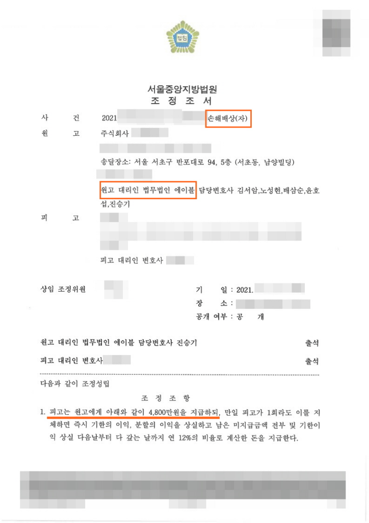 청구취지 금액의 약 80%에 해당하는 금액으로 조정을 이끌어낸 ‘보기 드문 성공사례’