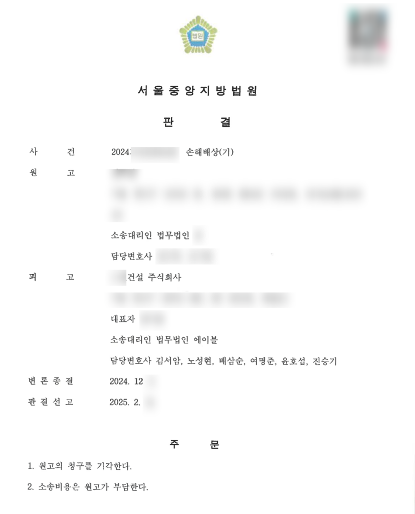 법무법인 에이블은 건설회사 A를 대리해 카페 운영자 J씨가 제기한 1억 3천만 원 손해배상 청구 소송에서 전액 기각 판결을 받았습니다. 이번 사례는 임대 계약 관련 손해배상 소송에서 증거 확보가 결정적임을 보여줍니다.